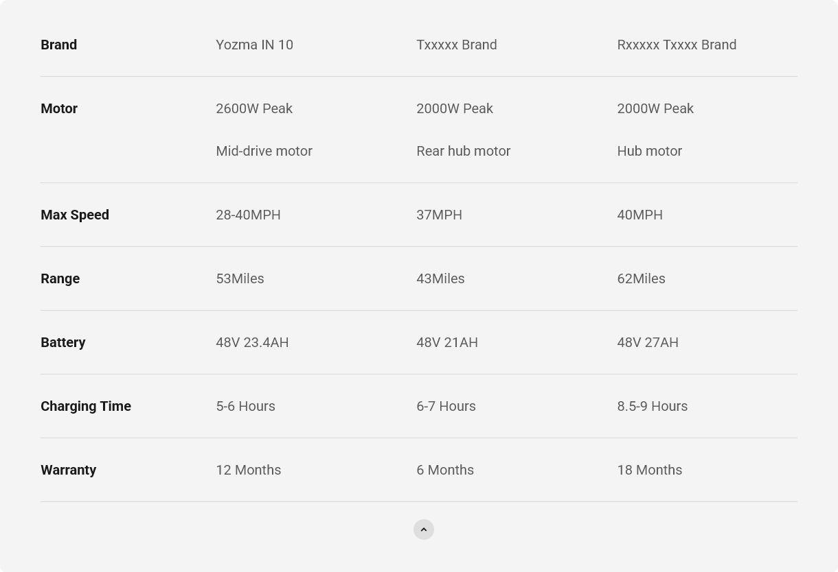 Motor: 48V, 2600W Peak, Brushless Motor