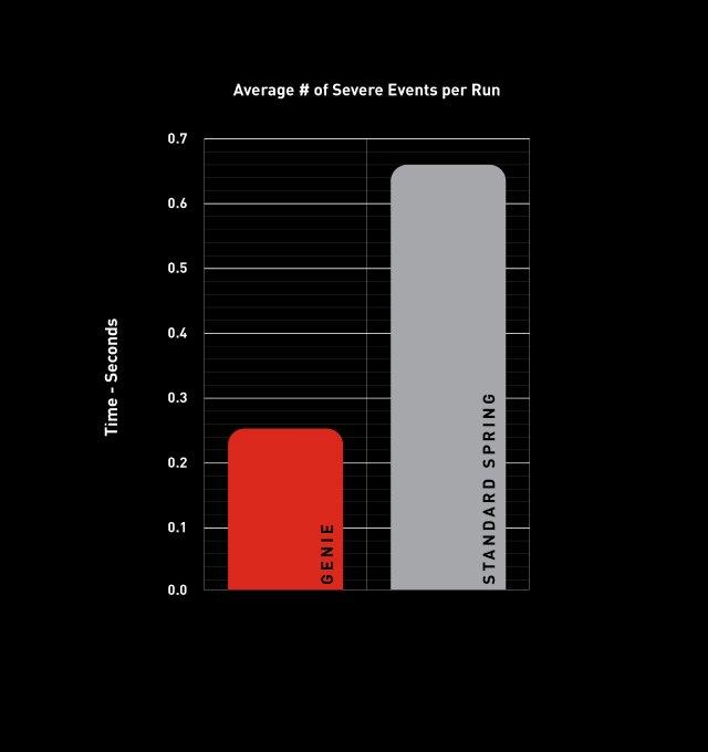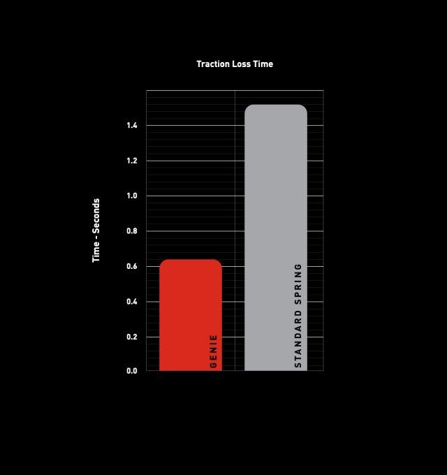 GENIE delivers 57% less traction loss time than a standard air-sprung shock because GENIE technology gives you supple, coil-like performance, which keeps the wheel in contact with the ground a greater percent of the time than a typical air spring would.