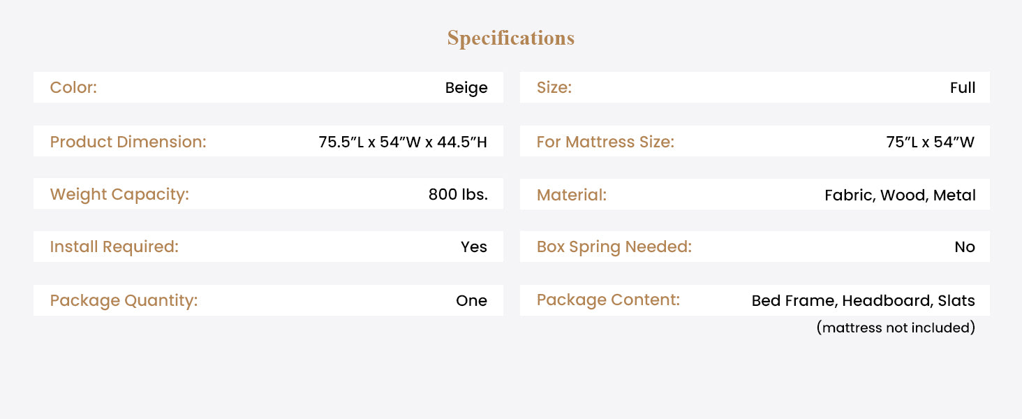 | Full | 79.4"L x 57.7"W x 44.5"H |