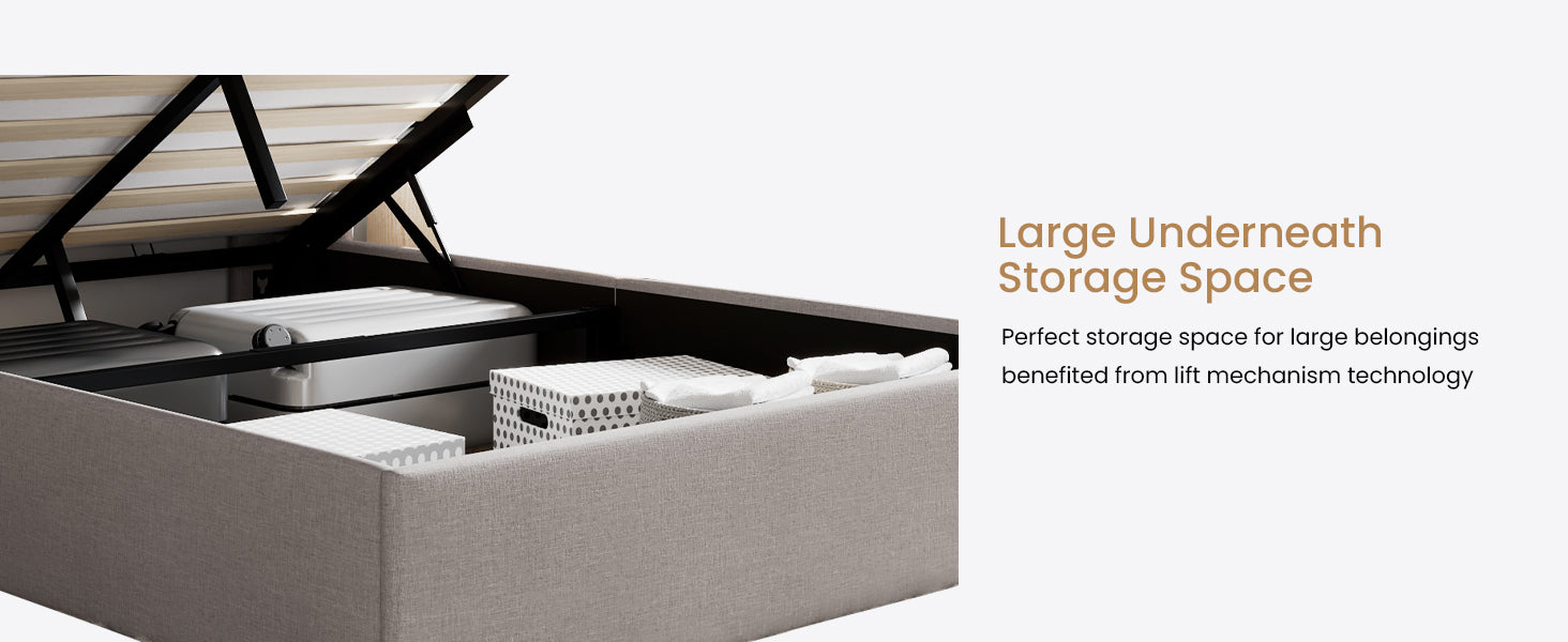 ''Lift-up design allows large underneath space to get used, making it perfect for your low usage-frequency belongings.''